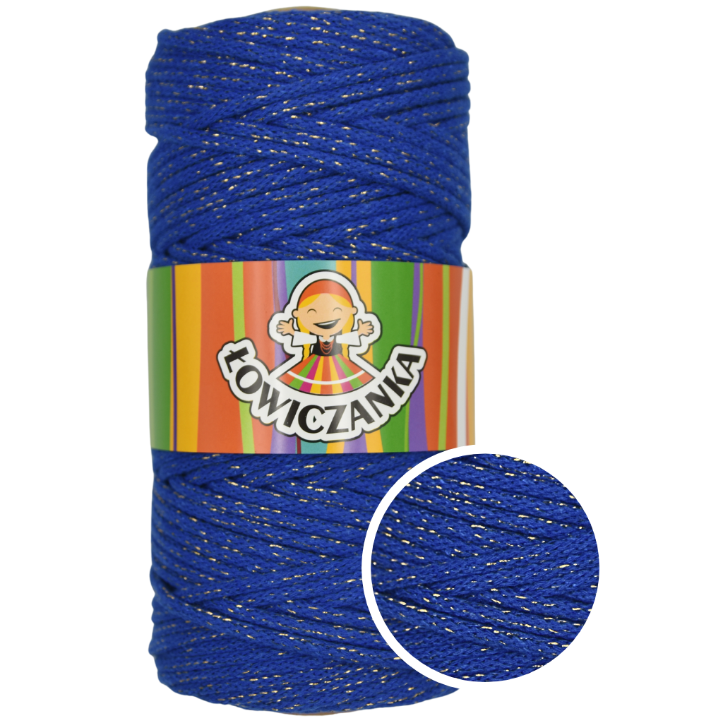 Bomullssnor 5 mm/100m - KORNBLÅ MED GULL GLITTERTRÅD