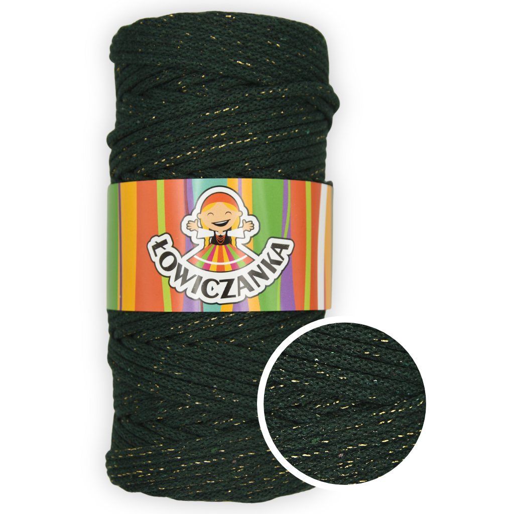 Bomullssnor 5 mm/100m - FLASKEGRØNN MED GULL GLITTERTRÅD