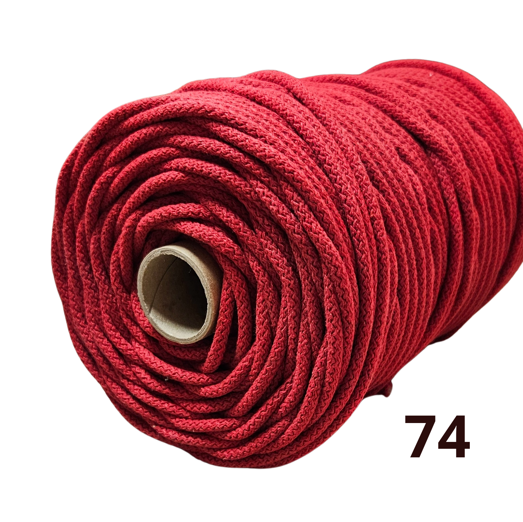 SyTau – Ekstra stiv bomullssnor med polyesterkjerne – 5 mm/100 meter, RØD 74