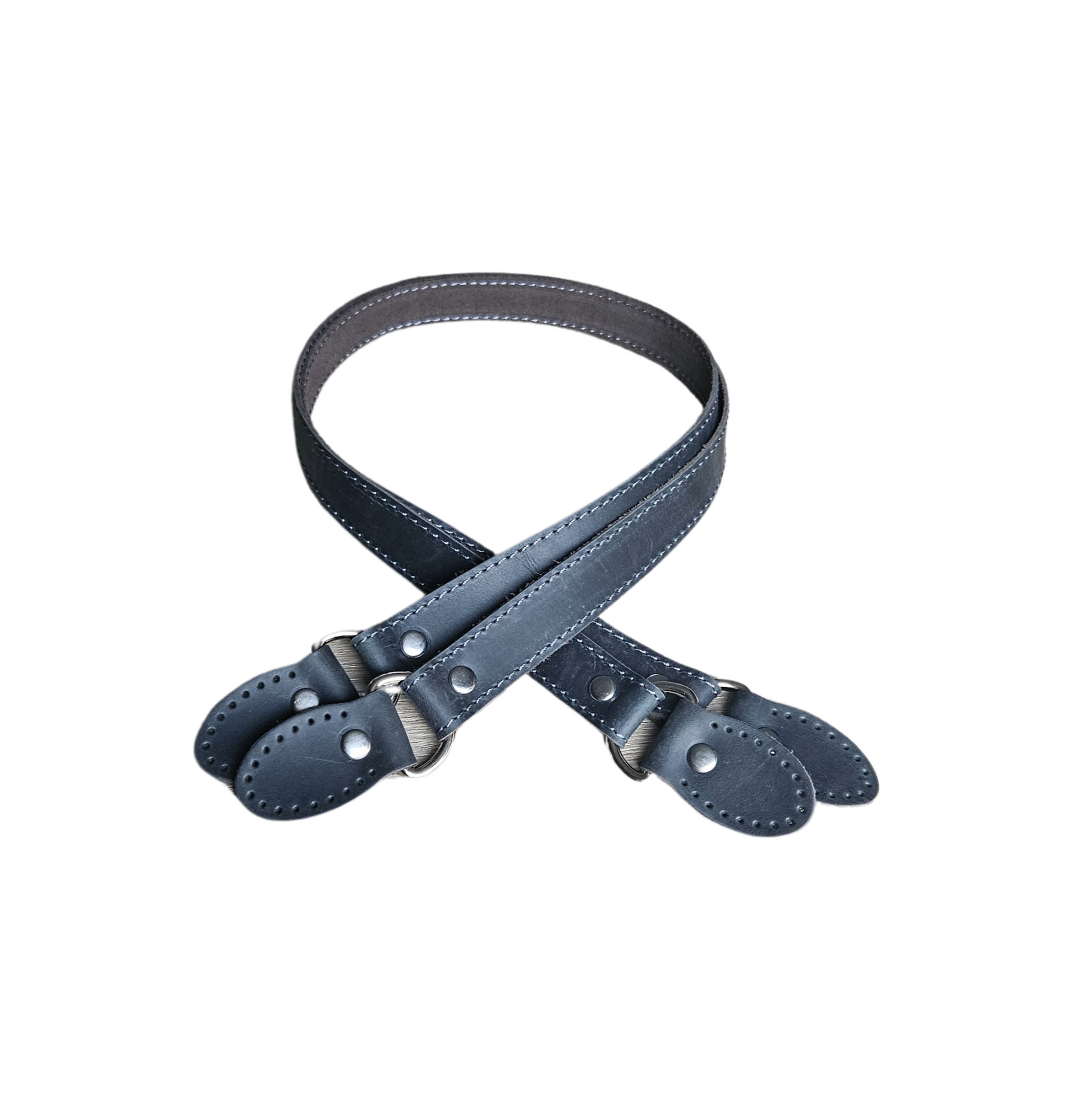 To stropper med hanker for å sy på en heklet veske. Stroppene er 75 cm lange og laget av høykvalitets skinn. Perfekte for å gi vesken et solid og elegant preg.