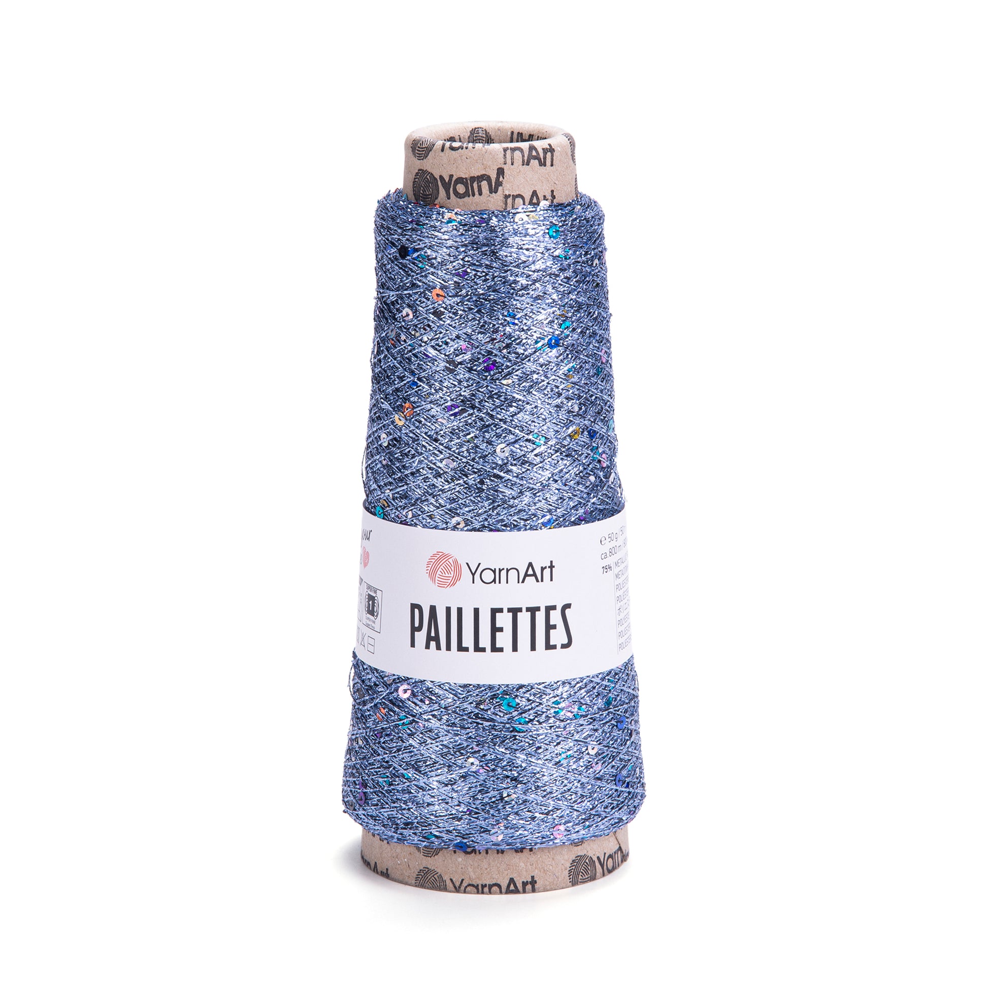 YarnArt Paillettes er et dekorativt effektgarn med små paljetter jevnt fordelt langs tråden. Det brukes hovedsakelig som tilleggsgarn for å gi prosjekter et elegant og glitrende uttrykk. Den tynne, lett glansede tråden tilfører dybde og festlige detaljer når den kombineres med andre garnkvaliteter.